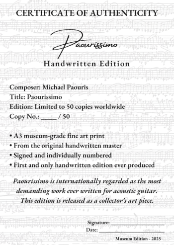 PAOURISSIMO – HANDWRITTEN MANUSCRIPT – NUMBERED & LIMITED 50